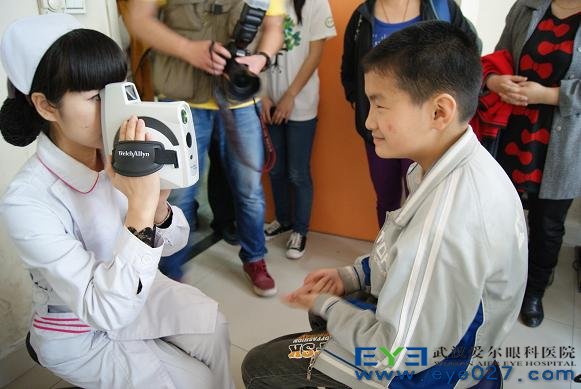 由于这些孩子不能很好的表达自己的感受,为了避免家长忽略孩子眼健康而影响视力的现象,武汉爱尔眼科医院还细心安排专门的医生和设备,为到场的每位孩子们提供了免费眼部检查。